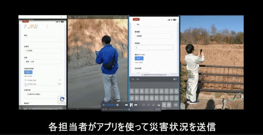 クラウドサービス「kintone」と地図情報を連携させ、災害現場の状況を可視化しながら関係機関で情報を共有できる仕組みとして、訓練での運用に貢献しました。