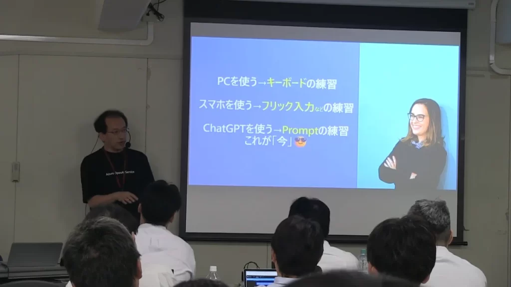 本研修では、SUNABACOのテクニカルフェローでもある日本マイクロソフト株式会社の畠山大有(はたけやま・だいゆう)氏を講師にお招きし、ChatGPTやMicrosoft Copilot、Microsoft Azure ML Studioなどの最新ツールを用いたノーコードDXハンズオンを行いました。