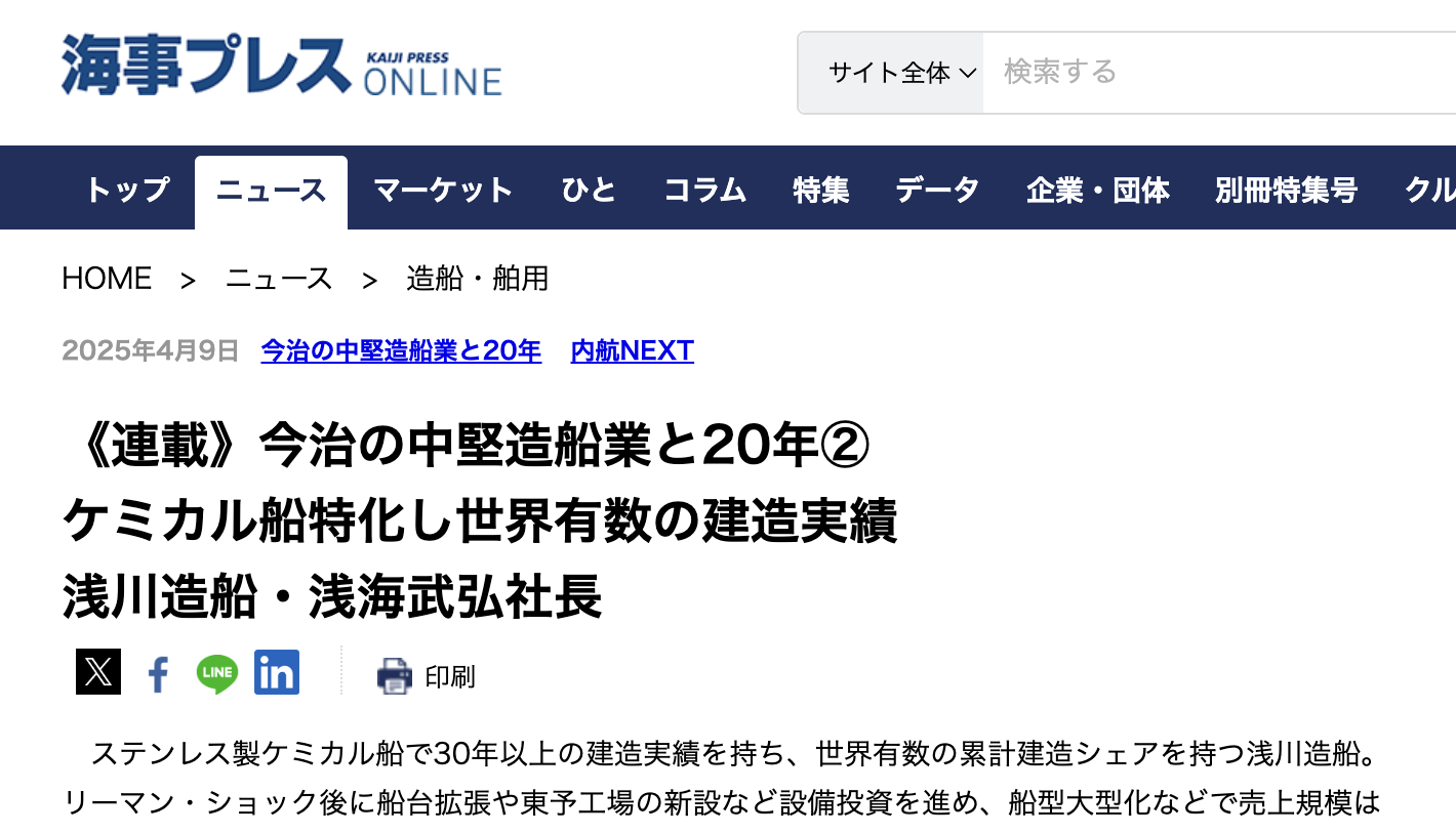 浅川造船・浅海社長のインタビュー記事にて、弊社の人材育成の取り組みが紹介されました!